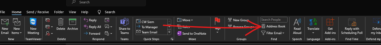 - From the “Home” tab select “Address Book”